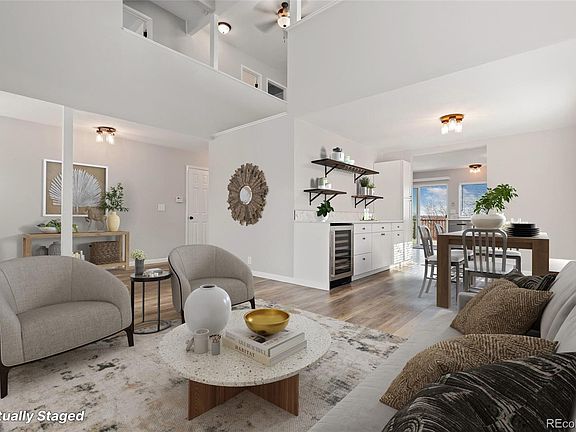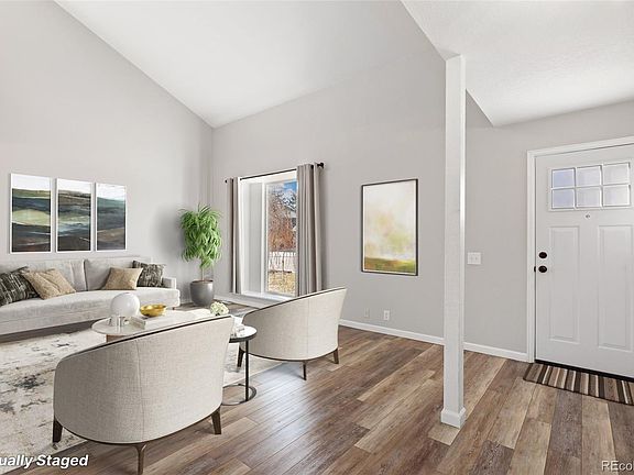 Beautifully updated 2-story home showcasing unrivaled views in the acclaimed Littleton School District! Recently renovated, the welcoming interior boasts fresh neutral paint, stylish lighting, upgraded flooring, abundant natural light, and new window treatments. A soaring vaulted ceiling highlights the living room that flows into the dining room that is framed by built-in white cabinetry topped by sleek quartz countertops, a Herringbone tile backsplash, open shelving, and a wine cooler. These chic finishes continue into the stunning remodeled kitchen that also features a lovely tile floor, stainless steel appliances, an island with seating, and a sliding glass door that opens out to the deck. The views from the back deck are truly amazing and very rare; the home's unique position on top of a hill and above the surrounding homes give you a bird's eye view of Denver and the Front Range. Back inside, the main floor is completed by a spacious family room anchored by a gas fireplace, the laundry room, and a handy half bath. The primary suite is found on the upper level and delights with a private balcony with more sweeping views, a walk-in closet, and a gorgeous remodeled bathroom complete with a barn door and a Herringbone tile floor. Also on the second floor are a flexible loft space ideal for an office, 3 sunny secondary bedrooms, and another lovely renovated full bathroom. More living space awaits in the finished basement that offers a rec room, conforming bedroom, and a large unfinished storage space. Other noteworthy features include electrical upgrades (including outdoor outlets for holiday lights), chimney repair work, an attached 3-car garage, and a large fenced yard. Wonderful location in a great neighborhood (with no HOA!), up the street from Goddard Middle School and blocks away from multiple parks, a community pool, and picturesque Bowles Lake. Relish easy access to lively downtown Littleton, the light rail, major thoroughfares & all of life's conveniences.