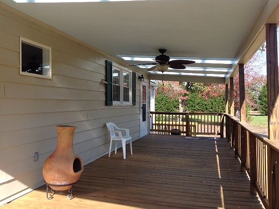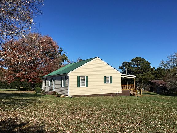 Charming and remodeled country ranch on 6.25 acres. Featuring an open concept layout for living, dining and kitchen areas with a cozy den with real knotty pine paneling and fireplace. Master bedroom with full bath and laundry facilities on one end, with a large second bedroom and half bath on the other. Lots of storage space in this home with ample closets and insulated and floored attic for storage or expansion. Partial basement (14'x18') has additional storage space, plus new furnace, hot water heater and central air conditioning system. The 10'x 30' covered back deck with fan is a great place for entertaining or just enjoying the privacy and scenery of the grassy backyard and picturesque tobacco barn and outbuildings. Less than 10 minutes from new VCU Health-Community Memorial Hospital.