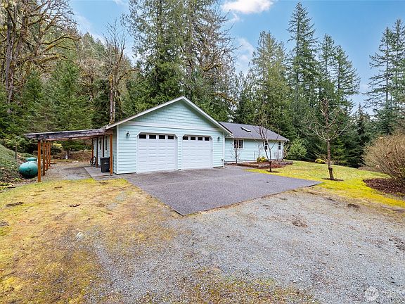 Welcome to your own private oasis, One-level 2 bedroom 2 bath home nestled on 2.7 park like acres of mature trees and a year round stream just a short distance from the back patio. Home has a large kitchen, big bedrooms, and a gas stove to keep you cozy on those winter days. Porch off the living room allows you to sip your coffee and stare out at the beauty that surrounds. Large two car garage. Did I mention this home is generator ready that feeds directly off your main propane tank? Short drive to the Skagit river, and numerous Skagit Land trust trails.