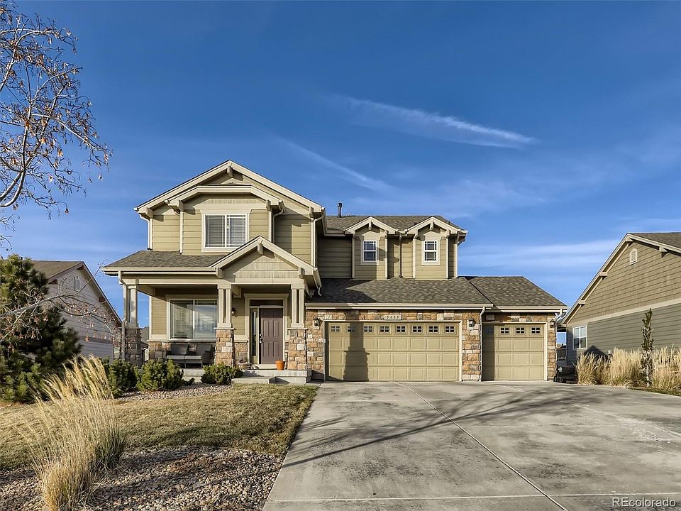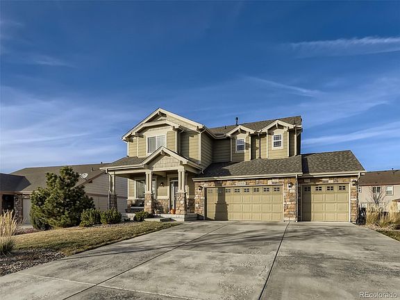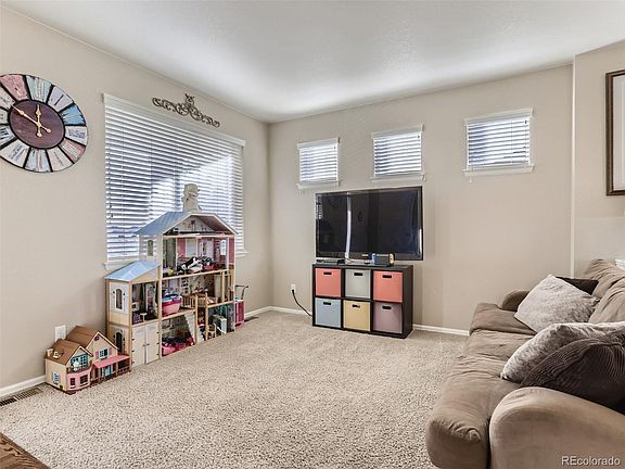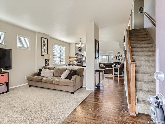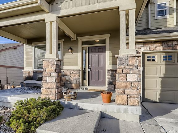 Gorgeous two story home in the sought after Spring Valley Ranch community. The gourmet kitchen features a big island, granite counters, and beautiful cabinets. The vaulted ceilings make the living room and kitchen feel even bigger than they already are. A wonderful, open floor plan. The living room has a fireplace with big windows looking out on to the covered patio. There are 2 spacious bedrooms upstairs with a full bathroom. A laundry room is also upstairs with plenty of storage space. The primary bedroom as an en suite with a large bathroom and walk-in closet. The basement is generous size that can be customized to fit your needs! Spring Valley Ranch is a quiet golf course community that is still close to all the amenities you need. An easy commute to Parker, Aurora, Denver and DIA!