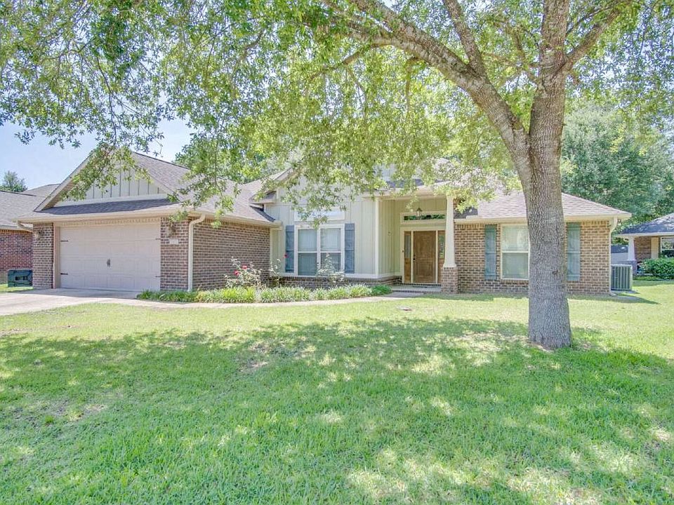 Beautiful 3-bedroom, 2.5-bath home in Twelve Oaks Plantation in Pace, located in a great school district and close to shopping, dining and more. This home features an open floor plan with high ceilings, hardwood floors, tile in wet areas, French doors and a wood-burning fireplace with a stone surround. The kitchen offers granite countertops and plenty of cabinet space. The primary suite includes a door leading to the backyard, a beautiful bathroom with a garden tub, separate tiled shower, double vanity and a large walk-in closet. Enjoy a big fenced-in backyard with a shed for extra storage. Two additional bedrooms and a half bath provide extra space and convenience. Pets welcome with owner approval and a $250 non-refundable fee (no aggressive breeds, 2 pet max, no cats allowed). Residents are required to have renter liability insurance, which can be added for $11.95/month or you can opt into the Resident Benefits Package (rbp) for $45/month, which includes renter liability insurance, HVAC air filter delivery and on-demand pest control. More details in the application. Dishwasher, Electric Stove, Island, Microwave, Pantry, Carpet, Breakfast Nook, Den, Dining Room, Laundry Room, Primary Bath, Primary Bedroom, Air Conditioning, Blinds, Ceiling Fan, Garage, Garden Tub, Walk In Closet(s), Washer Dryer Hookups, Fence, Lawn, Shed & Refrigerator.