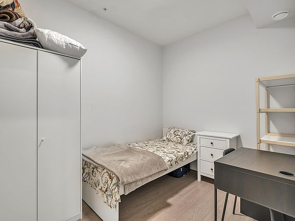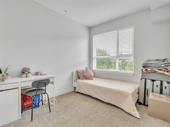 Welcome to this spacious and well lit 2 bedrooms plus den(7'8''/10'10'') and 2 Full bath unit at Ezeikel. The unit features high 9ft ceiling with laminate flooring in the living room, huge kitchen and dining area invites to create memorable gatherings.The quartz countertops, stainless steel appliances and in built microwave gives it modern appeal. The spacious bedrooms have carpets and primary bedroom has good sized walk in closet. This 3 year old building is walking distance to the upcomimg Skytrain station. The unit has 2 parking stalls and a storage locker.