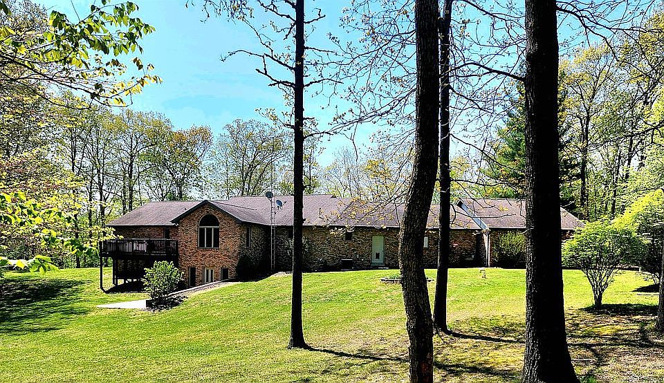 You've got an amazing sprawling ranch house with a walkout basement. It's set back 1/4 mile off the main highway and very private with the big machine shed and 4 car garage we all need. This house also has a commercial grade endless water heater for those long showers, blue tooth speaker in the bathroom as well. Besides being brick it's insulated very well and the utility bill reflects it. Also down stairs there's a theater room with a projector television set up also. As for the machine shed it's 54 feet long and 90 feet wide. So if you want that large brick house with the walkout basement, 4 car garage and the big machine shed as well as the acres you've found your dream home. Also this home has 1.5 acres underground wired fence and for the dogs. Works amazing (invisible fence)