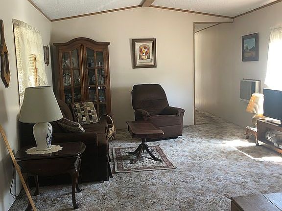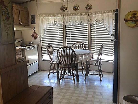 Charming and cozy 2-bedroom home ready for its next homeowner. The open floor plan gives the home an airy and welcoming feel. This home is very well maintained and move-in ready. The bright kitchen has ample storage and is equipped with a refrigerator, stove and microwave. The master bedroom is spacious and features two double closets that extend across the width of the room. This home has a full bath including tub and shower. The laundry area includes a washer and dryer with ample storage above. The 2nd bedroom also has a double closet and is perfect as a guest bedroom or office area. Outside, you have a covered deck, carport with attached shed and nicely landscaped lawn area. Set in a quiet and well maintained 55+ community this home is ready for you. Note: Homeowner must complete an application with the park and be accepted before completion of sale.