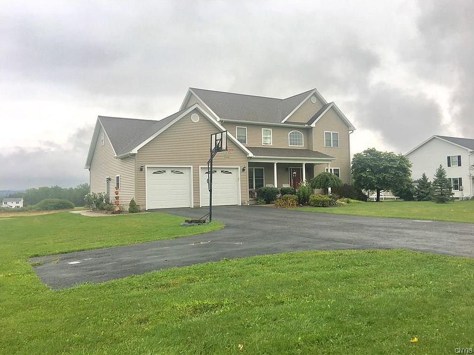 Move into your dream home by the holidays! This beautiful Colonial offers a breathtaking view of both the sunrise and sunset located on an acre of land. The first floor offers a Beautiful eat in kitchen with oak cabinets and large center island.The kitchen opens to the family room & front living room & formal dining room.There are sliding doors that lead to the deck & above gr. pool. The grand foyer welcomes you to the 2nd story with 3 bedrooms & 2 full baths. The master suite is lovely with Jacuzzi tub.The full finished basement is fantastic with warm carpeting & great space for entertaining .The exterior is vinyl attached 2 CAR garage & mature landscaping. NEW PICTURES COMING SOON!!