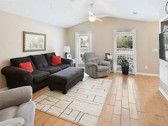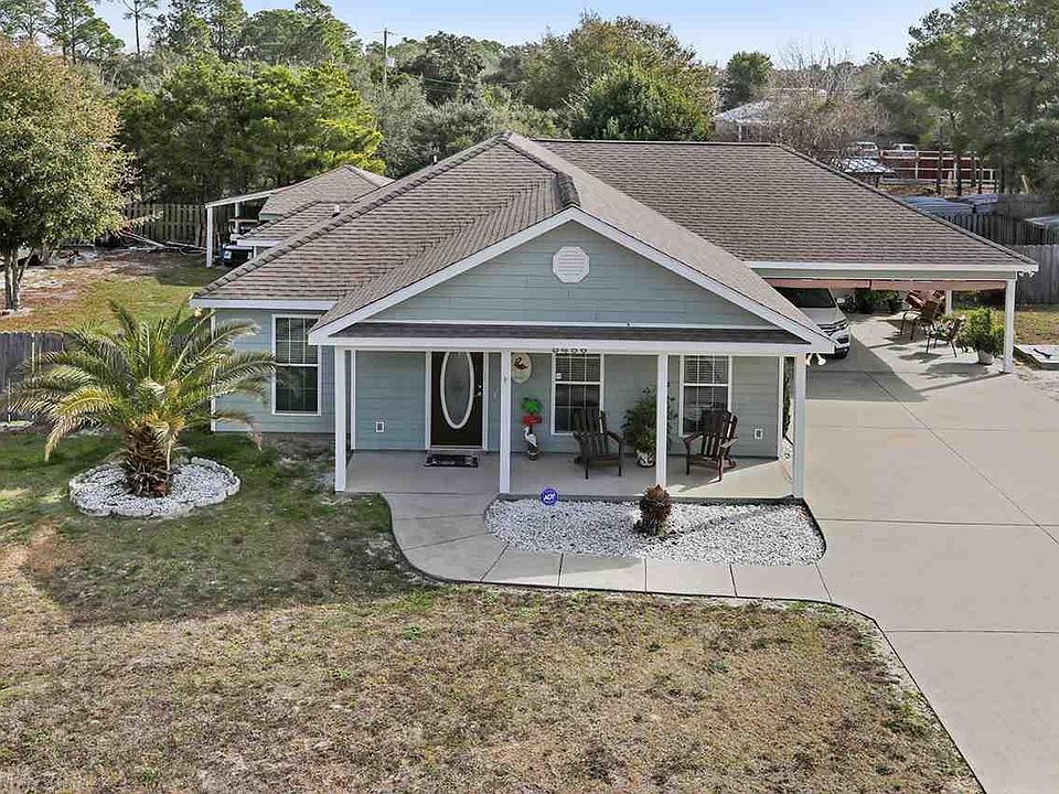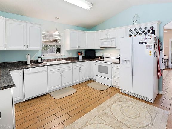 This home has plenty of privacy, as it sits on 3 adjacent lots! Living room features vaulted ceiling, fireplace, and a built in for a tv. Kitchen is open and has plenty of cabinet space. All kitchen appliances convey. Master bedroom has a large walk in closet with custom wood shelving and shoe rack. Master bath has great natural lighting, granite, jetted garden tub, and separate stand up shower. Beautiful tile wood plank flooring throughout main living areas. All bedrooms have vinyl plank flooring and nice sized walk in closets. Home also features a covered back porch, double carport with storage room, storage shed with a lean-to that has full electrical and window unit, and an open metal carport for an RV! Home also has an alarm system and is fenced.