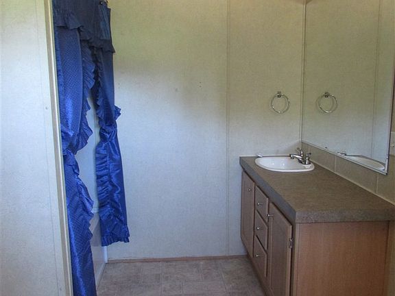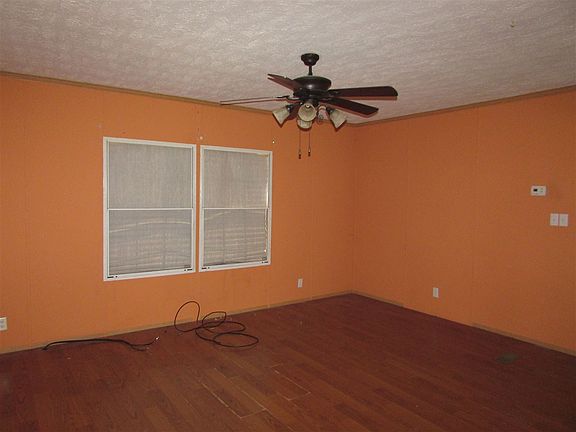 Very nice doublewide with gray siding and storage building on a two and one half acre lot. Includes a large 12x28 storage building with wood floor and electricity. Home includes refrigerator, kitchen range, and dishwasher. Three bedrooms, 2 bathrooms, combined kitchen/dining room, living room, laundry area, and a covered back porch and open front porch.