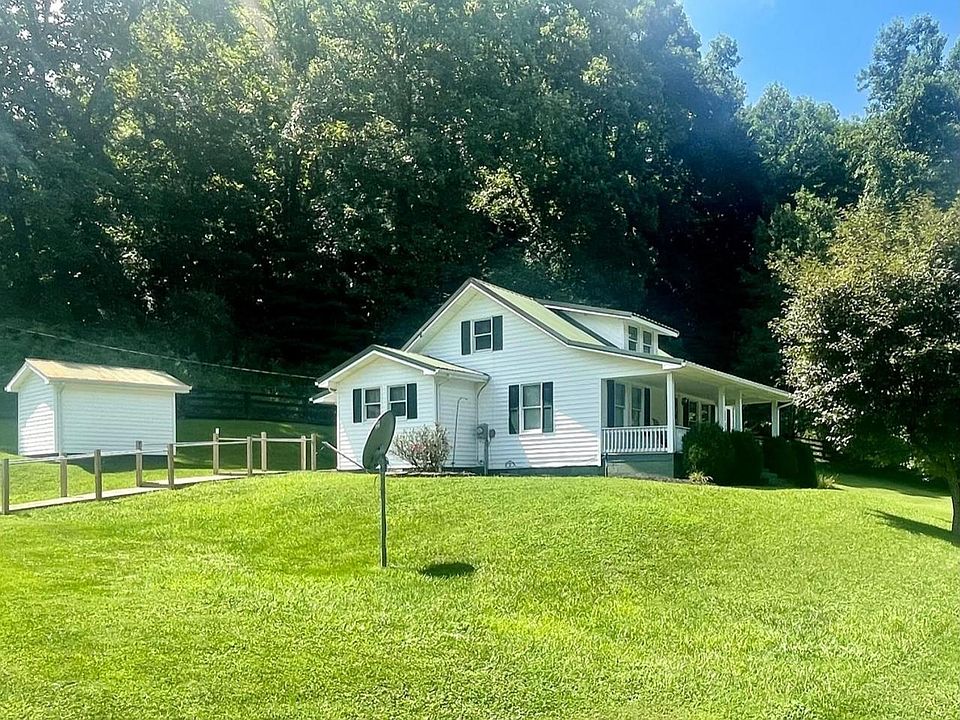 Enjoy the sounds of nature with this beautiful 2bedroom 2 bath Farm house setting on 43 +/- acres with magnificent views! The main level offers the primary bedroom, laundry, 2 baths and a large eat in kitchen that includes all appliances. The upper level provides 1 bedroom but could be used as 2 bedrooms depending on your families needs. This property offers many possibilities! If you like to hunt whitetails and turkey this property is loaded with just that! Beautiful wooded hills to the top of the ridge to an open creek bottom. Make this property your weekend get-away spot for family or a permanent residence. The great outdoors are calling you! This type of relaxation sounds like what you've been missing.