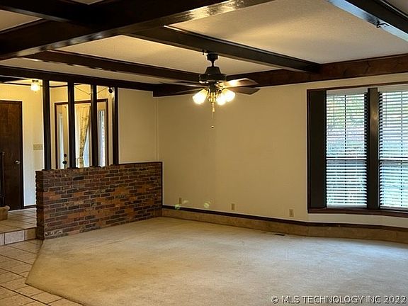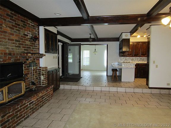Traditional styled home on almost 3 acres in SE Oklahoma, just a few miles away from Broken Bow, Beavers Bend! Downstairs you will find spacious sunken living area with wood burning fireplace insert to take the chill off those cool evenings. Step up into the breakfast room and kitchen featuring marble tiled countertop and breakfast bar with tile flooring. A formal dining area opens onto the pool area. Primary bedroom features a recently updated walk-in shower and Hollywood styled vanity. Hall bath with recent updates and 2nd bedroom complete the first floor. Take a walk upstairs to find a huge game room or den in the center and banked on each side by a bedroom with hallway access to full bath. To utilize the view from the rooftop, access from the west bedroom door. And how about the view? Picturesque acreage all around and roof top view of the inground swimming pool. Exit out the dining room to the pool area with plenty of room for outdoor seating including a covered area, perfect for an outdoor kitchen. 2.5 bay garage hold an indoor access to storm cellar and an oversized utility area. 1 year Residential Service Contract with acceptable offer.