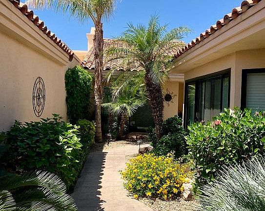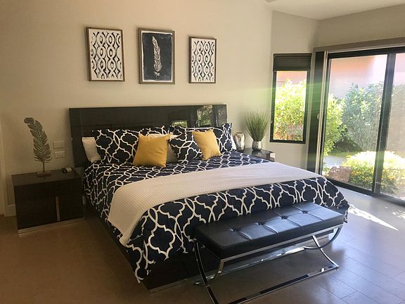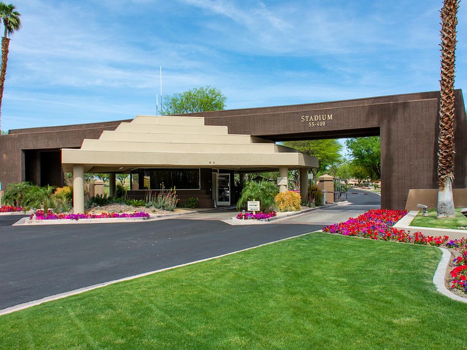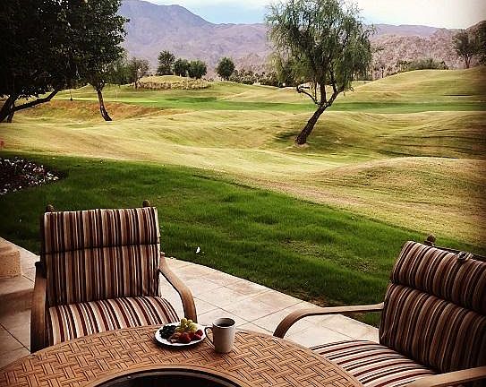 Uniquely spacious & beautiful condo on 16th fairway of The Stadium course, home of The Career Builder tournament (previously Bob Hope Classic). Glorious mountain views, open floor plan, soaring ceilings and western sunsets on the patio. Living room with clerestory windows and views, views, views! 3 bedrooms (one currently used as a pro golfer's gym) and atrium putting green. Kitchen offers high-end upgrades fit for Chef Gordon Ramsay, including GE Profile Advantium and Wolf steam ovens, Viking cooktop, Bosch dishwasher, cherry cabinets, quartz countertops, end-grain walnut butcher block countertop, sub-zero refrigerator-freezer, and a large-capacity built-in wine cooler with dual-temp controls. Let your inner Ina Garten take over! Master bedroom includes a spacious closet with built-ins. Skylighted master bath boasts walk-in shower and plenty of cabinetry. Torlys® trend-setting cork flooring throughout. Enjoy all PGA West has to offer! Pinch yourself to make sure it's real.