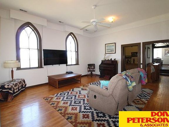 This property is an absolute MUST SEE!! This was once a church that is now converted to a fantastic home with amazing hardwood floors, great light in each room, and such character, you will not want to miss it! This home has three bedrooms and two baths, an updated kitchen and tons of space throughout! The amazing, tall ceilings, and beautiful cathedral windows, and woodwork are breathtaking. It has two garage spaces attached, along with an outbuilding perfect for storing all your tools and toys! The basement has a very large workshop area, along with a second kitchen, and lots of storage space. This peaceful and serene area is two total acres and just a few miles from Lewis & Clark Lake and the Wiegand Marina which offers lots of recreational opportunities. This home would make a perfect family home or a fabulous weekend/vacation home for extended family or large groups!