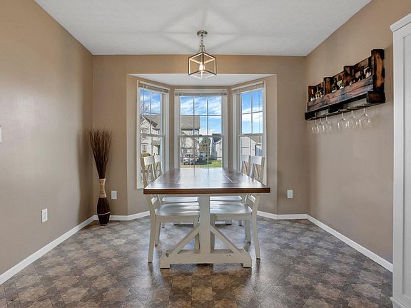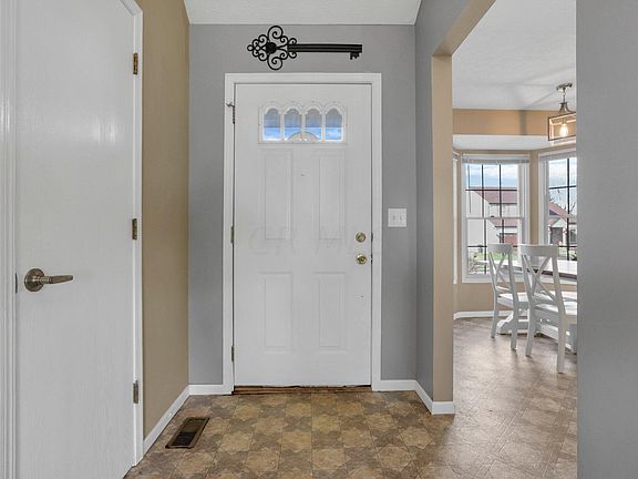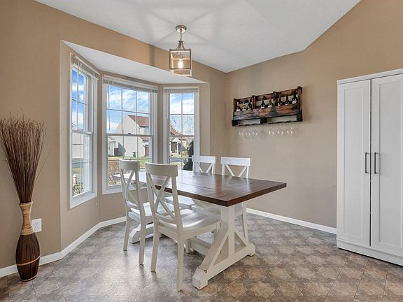 Welcome! You'll be greeted by a bright and airy foyer that leads you to the spacious living area w/ vaulted ceilings. The main level features an open concept floor plan that seamlessly connects the living, dining, and kitchen area. The well appointed kitchen is fully equipped with appliances, sleek countertops, and plenty of storage space, w/ eat-in space. Three spacious bedrooms, including a luxurious FF primary suite w/ a walk-in closet and an en-suite full bath. The additional bedrooms upstairs are bright and airy, w/ ample closet space. Located directly off of the full bath. Partial basement, great for storage. Outside offers a spacious backyard with a new concrete patio that's perfect for hosting summer BBQ's. Two-car attached garage and a driveway that provides plenty of parking.