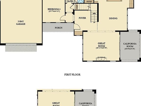 Offering approximately 2,865 square feet of living space, this floorplan includes four bedrooms, two bathrooms and two-car garage. Past the covered porch is a welcoming foyer that leads to the dining and great room space and into the upscale kitchen with center island, connected through an open-concept layout. Adjacent to the great room is a California room that blurs indoor and outdoor space, perfect for entertaining in Santa Barbara's fabulous weather. One secondary bedroom is located downstairs and if you work from home you can opt for a home management instead of a drop zone space. On the second floor are two additional secondary bedrooms, a bonus room, covered deck and laundry space. The master suite features a spacious walk-in closet and master bath with dual sinks and quartz countertops.