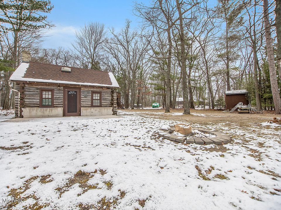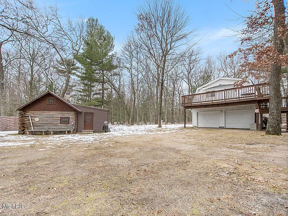 100 feet of frontage and featuring one of the original log cabins on Bass Lake! This charming cabin was built over 100 years ago and lovingly cared for with its unique setting. Historically a one room cabin now being used as a large living room with wood burning fireplace and a newer addition off the back with Kitchen & full bath. This Property offers not only the cozy cabin but a 20 year old two story garage with loft and living space above, offering 2 bedrooms, full bath and large bonus room with sliders that lead out to a spacious deck boasting beautiful views of bass lake and nature! This property has many unusual features including a vacant lot and rare deep lot that touches a private pond/lake in the back. So many possibilities for future expansion.