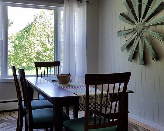 Nicely remodeled, comfortable, 1-story living, privacy. This Calumet Township ranch home has just what youre looking for. Living room and dining area are open to each other and feature big picture windows looking out on an idyllic view. The focal point of the living room is a wood stove you can cozy up to. The kitchen opens to a breakfast nook so you can prepare meals and enjoy the company of family and friends. The kitchen features a tile back splash and an exposed brick wall. There is a family room leading to the attached garage that could be an office, den, or what have you. Three comfortable bedrooms and a lovey remodeled full bath round out the main floor. The bathroom features ceramic tile and an overhead rainfall shower head in the tub/shower and a tile back splash behind the double sink vanity. Newer windows. New natural gas boiler in 2012. Plenty of storage and closet space. Enjoy the 6.65 acres in which the Hammell Creek meanders through. The property is conveniently just off M26 but is set back and nicely wooded so youd never notice the road. There are open fields with apple trees and a fire pit.