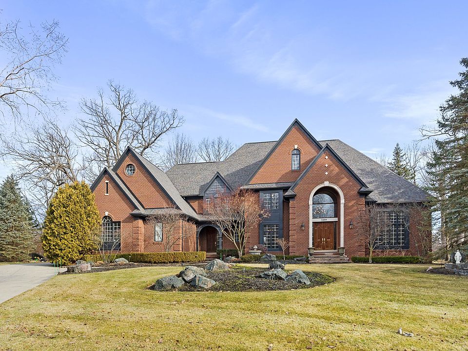 Beautiful colonial, situated on just over an acre, on a quiet cul-de-sac in the highly desirable “Hills of Oakland” subdivision. This home offers over 6,000 square feet of finished living space, with 4 car oversized, side entry garage. Gourmet chef's kitchen with professional-grade appliances (3 ovens and warming drawer) and oversized baker’s island, fireplace – perfect for cooking, eating and gathering. Formal dining room, private office w/ French doors and fireplace, formal living room with fireplace and stunning diamond pattern glass French doors. Two story great room with two-sided fireplace. Elegant stone detailing and archways throughout. Private primary suite with his and hers walk-in closets. First floor laundry, finished basement with kitchenette, full bath, rec area, theater room, and an abundance of storage. This home is a must see! Rochester Schools.