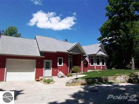 A sweeping radiant heated fully paved driveway leads you to a stunnning 10 ac. country estate with year round Lake Mich. views. Spacious foyer brings you to this 4 bedroom, 2.5 bath 2,744 sq.ft. ranch built in 2002. The 28'x26' Great room has floor to ceiling natural fieldstone fireplace over looking a gorgeous inground pool with automatic cover, decks and patio to watch magnificent sunsets. Gourmet kitchen, radiant heated, air conditioned home, 40x30 stick built heated barn, AC shop