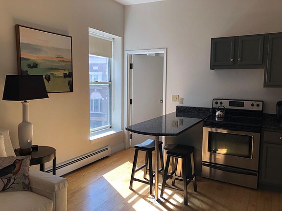 Bright, cheerful third floor unfurnished studio apartment in secure building in the heart of Portland's Arts District. This building would be great for someone who enjoys living in an apartment building with other quiet and respectful tenants. Features: Key pad entry (never lose your keys or lock yourself out) Large windows with custom blinds Hardwood floors, granite countertops, stainless full-size appliances Ample closet space and plentiful kitchen cabinets Heat and hot water included Shared coin-op laundry in the basement Nearby parking available for a monthly fee Well behaved, spayed/neutered pets allowed on a case-by-case basis. Extra pet deposit required. Limit 2. Requirements: Solid rental history Excellent references Proof of income Non-smokers only please One year lease. Tenant is responsible for electricity and cable/internet. Parking available for an extra fee.