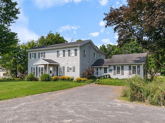 This Lovely & Spacious 5-bedroom, 3-bathroom home sits on 3.4 serene acres, boasting a perfect blend of modern convenience and country charm. The first floor features a bedroom and a full bath/laundry, an updated large "eat-in" kitchen and dinette area overlooking picturesque backyard along with huge double living room. Upstairs, you’ll find 4 additional bedrooms for the whole family or guests. The property boasts a separate living space/entrance, ideal for a business, in-law apartment, or rental potential. Enjoy the outdoors with a fire pit, above-ground pool, and a mix of open land and woods. The two-car garage provides ample storage, and the home features hot water on demand. Double wide driveway makes it easy for plenty of parking. Successfully operated as an Airbnb, this property presents both a peaceful retreat and income potential. This beautiful home is centrally located between NYS Thruway exit 41 & 42 in the Finger Lakes Region. See private remarks for updates.