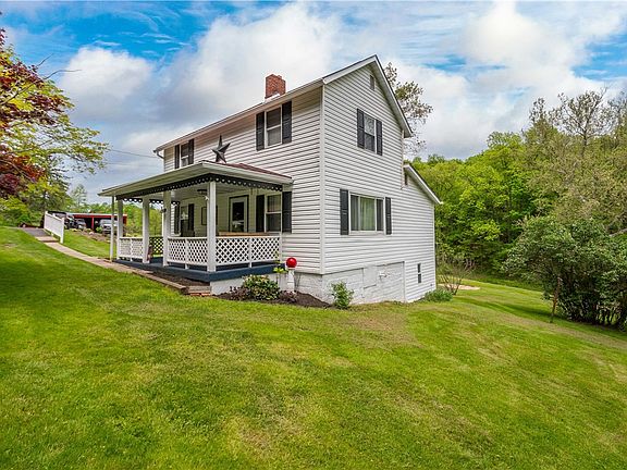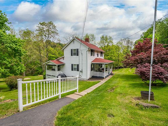 ADORABLE COUNTRY CHARM! This lovely farmhouse is situated on a very quaint 2 acres in Bethlehem-Center School District. It features 3 bedrooms, which includes a first floor master or second den/office space and a large eat-in kitchen. Gorgeous hardwood floors can be found throughout most of the home. Upstairs features 2 bedrooms and an updated full bath. The quiet outdoor space with this home allows you to drink your coffee on a traditional farmhouse front porch, spend your time gardening or enjoy the large yard and stream in the back. Covered parking, a shed and additional outbuilding complete this perfect farmhouse setting. Make this your next home!