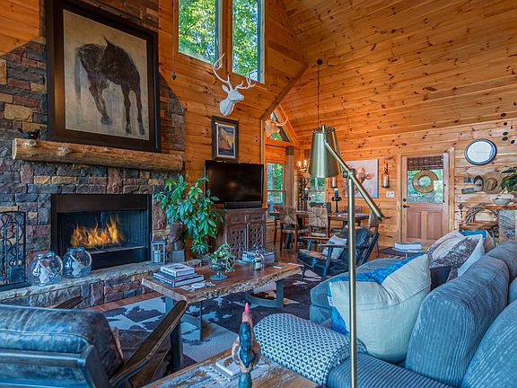 YOU GOTTA SEE IT!!! REFINED MOUNTAIN LIVING AT IT'S BEST. Conveniently located minutes from downtown Blue Ridge, this property lies on 2.35 private acres with Toccoa River access. Beautifully landscaped this impeccably maintained 3/3 boasts custom features including upgraded appliances, chef kitchen, spacious open living room with plenty of porches and decks throughout. An exterior fireplace with plenty of gathering areas for all. family. Master en-suite includes a private balcony. Terrace level provides guest quarters for family or friends. A DO NOT MISS!!!