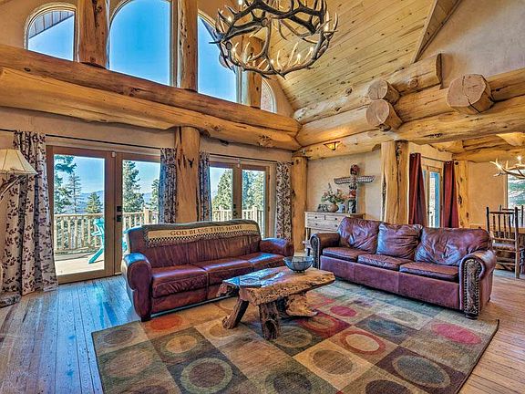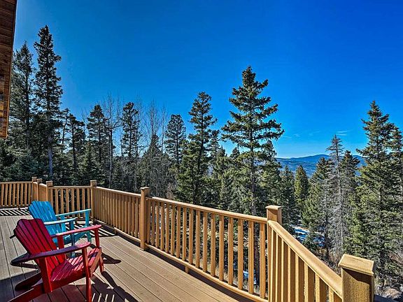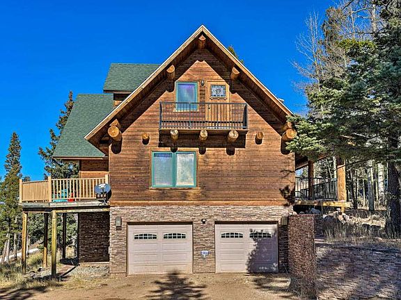 Imagine yourself and family in this gorgeous, ski-in, ski-out 4-bedroom, 3-bathroom luxury home that features a slew of 5-star amenities including a hot tub, game room, and a wood-burning fireplace. Located in Angel Fire Resort offering unlimited outdoor adventure, take advantage of all the amenities the resort has to offer. After days spent skiing, tubing or mountain biking, you'll look forward to gathering under the cathedral ceilings, cozy up by the feature floor to ceiling rock fireplace and enjoy the spectacular sunset views behind Wheeler Peak. This home has many stunning features including logs harvested from the forests of British Columbia, shipped down to Angel Fire. The wood flooring is 100+ year old growth pine that was harvested from an old cotton gin in Louisiana. Feature bricks around the stove and vent are 100+ year old bricks recovered from an old warehouse in Chicago that burned in 1976 and stained glass that was hand-picked. The home has an open living, dining and kitchen area with the master on the main floor. Upstairs boasts two bedrooms and a bathroom. Downstairs is the bunk house and game room, complete with a pool table. From this level, you'll access the two car attached garage and on the lower deck is completed with a hot tub. Whether you spend your days shredding the slopes or hiking breathtaking trails, your family is sure to enjoy making memories for many years at 'Burning Sky Lodge." *NOTE: The ski-in/ski-out trail next to the house is Texas Flats ski run. This run is not always groomed, nor does it have snowmaking capability so access is dependent upon snow conditions*