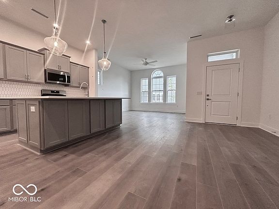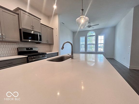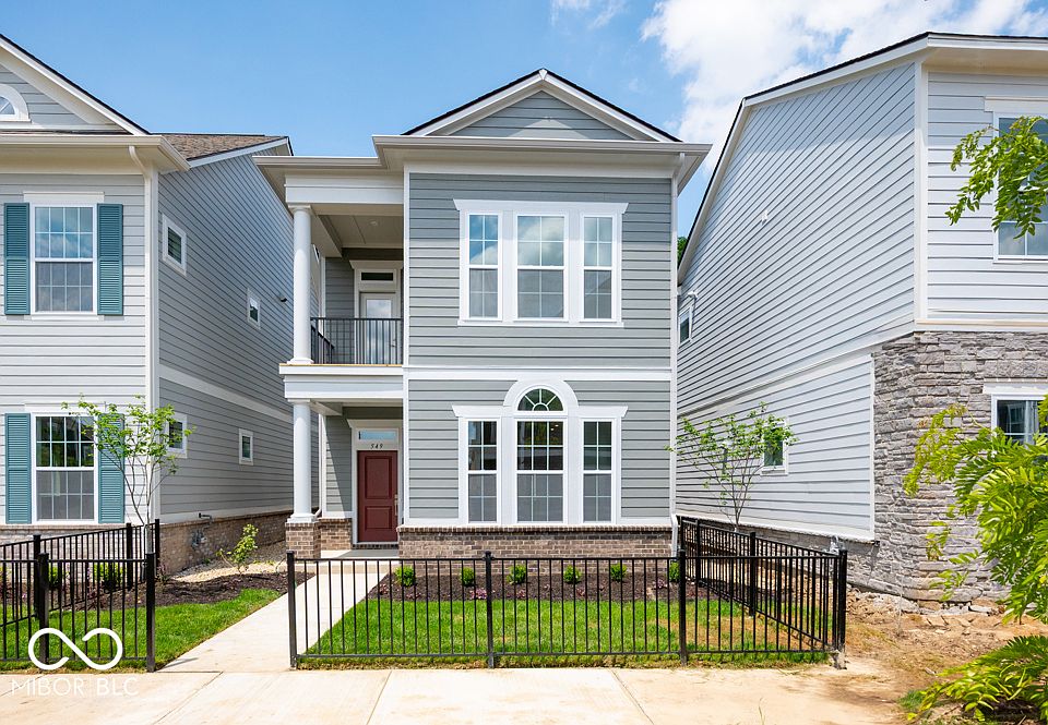 Beautiful new home in the heart of Carmel! This home will delight with 3 bedrooms, 2 and a half baths and a two-car 10' ceiling finished garage. Cozy main level features 10' ceilings and comes with an abundance of quartz counterspace throughout and a large quartz kitchen island to gather around with friends and family. This home features trendy kitchen cabinets, luxury laminate wood flooring in main areas, stainless steel appliances with gas range, refreshing super-shower, water softener rough-in and much more! Our homes feature 9' and 10' ceilings throughout the entire home! Community pool and a pool house are our top amenities, and you will be within walking distance to the Palladium, Monon Trail, gourmet restaurants, Arts and Design District and all that downtown Carmel has to offer!