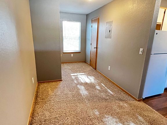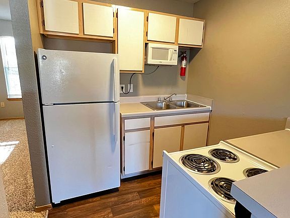 Welcome to our renovated loft-style apartment in Lawrence, KS, where you can enjoy the fall colors right from your spacious patio! This 1st floor apartment features a large living room with a picture window, an open kitchen with breakfast bar, all electric black appliances, and updated cabinetry. The bedroom boasts a large closet, while the bathroom offers a full-size bathtub/shower and modern fixtures. With wood plank flooring in the kitchen, dining room, and bathroom, as well as carpet in the bedroom, this apartment has a cozy yet modern feel. Stay comfortable year-round with a ceiling fan in the living room and bedroom, as well as electric heating and a Packaged Terminal Air Conditioner. Our pet-friendly community has no breed restrictions or weight limits, and offers amenities such as a fitness center with enclosed yoga studio, resident lounge with free wifi, and a resident coffee station. Conveniently located near parks, shopping, dining, and just 10 minutes from the KU campus and downtown Lawrence, this apartment is the perfect place to call home.