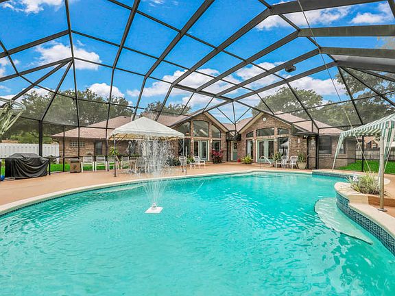 Ranch style home with over an acre of property in the heart of Fleming Island. This 4,654 sq. ftone level single family home has No HOA fees. Located in Fleming Oaks and zoned for toprated Clay County schools.The property is beautifully landscaped with trees and shrubs on a 1.1 acre property with 210feet of street frontage with a double seat porch swing, and the 1/3 acre rear yard is completelyfenced. The rear yard includes 2 Sheds that are 12ftx12ft and a 12ftx16ft with a barn roof thathas attic storage.The fully automated pool is screened by a custom designed cage that was recently re-screenedwith down lighting from above for a night swim. The pool screen connects to the home's PoolBath, Sunroom and Pool House/Shop, currently a workshop with 110/220 electrical,