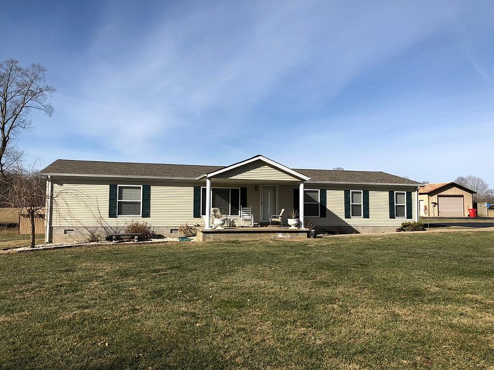 Immaculate Doublewide with 1.30 acres. Home offers 3 bedrooms, 2 baths, formal dining, covered porch and deck, and detached garage.