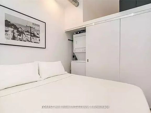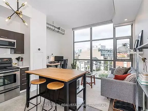 Corktown Contemporary Soft Loft in Desirable Boutique Building Approx 465 Sq Ft. 1 Bedroom with sliding Barn Door, Double Closet in Bedroom, 10 ft Ceilings, Polished Concrete Floors, Designer inspired kitchen, S/s Appliances, Steps Away from King & Queen TTC, Walk to Riverdale, Distillery District, Corktown, St Lawrence, Financial District, Shared Gym with Building Across the Street.