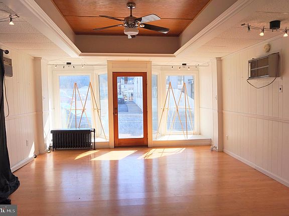 Business space perfect for a small business located directly across from a bank. Live upstairs and work downstairs without leaving home. Featuring a 2 bedroom apartment above the business space and 2 car 2 story detached garage! Could also be used as an investment with 2 units and 2 storage spaces to rent!