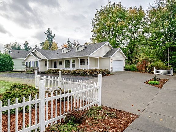 Ames Creek in your backyard. This 2005-built, single level home has charming covered front walk & entryway. Home is 1582 sf & sits on just under a half acre. Vaulted ceilings in living room w/gas FP & slider to large covered patio & steps to the Creek. Bright & spacious kitchen w/pantry, primary bedroom w/vaulted ceilings, walk-in closet, soaker tub, walk-in shower. 2 guest bedrooms, inside laundry. Small shop w/pull thru garage doors. Property was originally going to be 2 lots, poss dividable.
