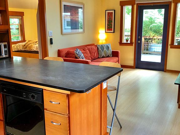 Beautifully remodeled 1910 Craftsman Cottage in the heart of Greenwood. This cozy, private one bedroom home features: Lofted 12-foot ceilings with venting skylights. Custom built-in cabinets throughout. Gas fireplace and radiant floor heating in the bathroom. Custom chef's kitchen with gas range and stainless appliances. In-unit washer and dryer. Large sunny deck, basement storage, garden boxes and mature landscape. Also includes 8 X 8 detached space that is fully finished, heated, with a cozy loft that could be used as the perfect office to work from home. Blocks from Metro Transit Lines 5, 45, 61 and Rapid line E conveniently serving UW, Downtown, Capital Hill, Northgate and Ballard. Great neighbors in a quiet, desirable neighborhood. Ample on-street parking. $2500/month plus utilities. 12-month lease with first month's rent and damage deposit ($1500) due at the signing of lease. Sorry, no pets and no smoking. Available January 1, 2025.