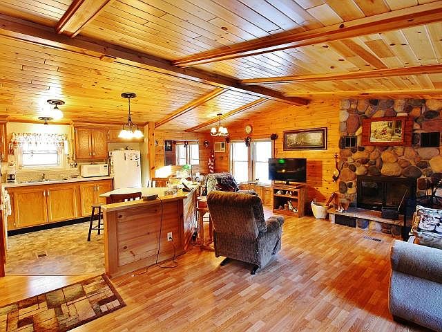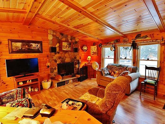 BOND STREET HOME - This cute home in Eagle River packs a punch! Offering 2 full bathrooms, a true master bedroom with walk-in closet, guest bedroom, and an open concept kitchen/living room; get your moving truck ready. The owner has installed beautiful stamped concrete in the front and rear of the home, a perfect fit with the breathtaking landscaping. There are newer windows, fixtures, flooring, and tongue and groove throughout the home, as well as a new furnace this past fall. The owner has had new insulation installed in the ceiling and added granite countertops to the kitchen and breakfast table. The kitchen island was placed at a lower height, allowing a better view of the field stone wood fireplace. There is a covered porch/breezeway giving attached access to the 2 car garage and a back alleyway for multiple entrances to the home. BONUS - E.R. Chain boat landing a Silver Lake swimming beach are both footsteps away!