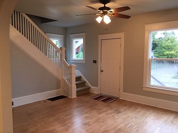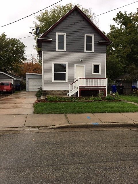 2 bedroom, 1 1/2 bath 2 story. First floor laundry! New vinyl windows. Hardwood floors have been refinished in living room, kitchen and bedrooms. Original white woodwork. New cabinets and counter tops in kitchen. Refrigerator, stove and microwave are included. New garage. Walk to Downtown!