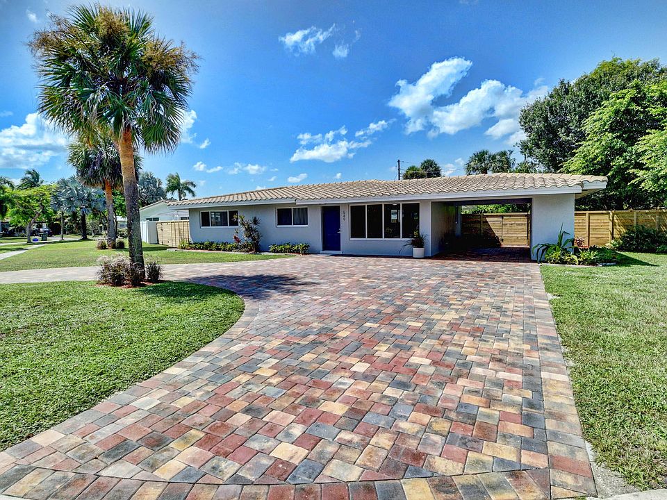 Mid Century Modern with a coastal flair greets you in this renovated pool home in Country Club Village, an East Boca Raton community with no HOA! Walk to A rated Boca High and Boca Middle Schools and just a short bike ride to Addison Mizner Elementary School. Close to the beach, Mizner Park, FAU, Whole Foods and easy access to I-95. This home has it all - impact windows and doors, beautifully restored terrazzo floors, new hot water heater, 2008 duct work, all LED lighting, and an open concept floor plan with tons of natural light! There is no popcorn and no carpet! The white kitchen features quartz counters, soft close drawers and Whirlpool stainless steel appliances. The sellers are offering a $500 allowance so you can personalize the home by choosing your own kitchen backsplash.