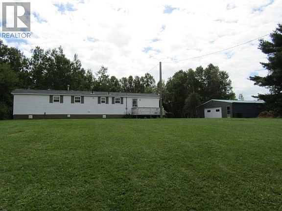 This home with an original 1992 14x60 mini home sitting on concrete piers also has a new customized 14x20 addition on a full concrete foundation in the last 5 years. A well maintained property with numerous updates including: Mitsubishi heat pump, propane stove, roof, some flooring and new addition, all within the last 5 years. The home is currently being used as a 2 bedroom, with the large addition being used as a family room that could easily be used as a large master bedroom if more space is required. If you are looking for an affordable home with a large detached garage on approximately 1 acre private lot than this is it. Note: Vendor to sever approximately 1 acre from larger parcel prior to closing. The other 10 +/- acres can be purchased at an additional cost. Tax and Assessment values listed are for the entire parcel. (id:1184)