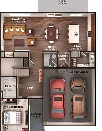 The Jansen is a beautiful two story floorplan that includes four bedrooms and three bathrooms. The main level hosts an open concept kitchen, dining and great room. The kitchen finishes include a white subway tiled backsplash, 42" Java Maple cabinets, and simply grey quartz countertops. Luxury vinyl flooring is throughout the main level. Through the dining area you can access a 20'x 10' back patio. There is a bedroom and 3/4 bath conveniently located on the main floor. Upstairs there are three additional bedrooms including the owner's bedroom and a spacious loft. The laundry room is conveniently located upstairs and includes a folding table along with additional shelving.