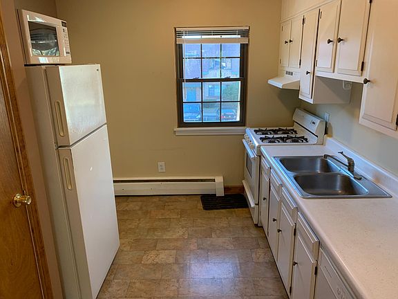 2nd Floor Single Level Condo with 2 Bedrooms. Wall to Wall Carpet in Bedrooms. Full Bath with Tub/Shower. Laundry Facility on Site in Bldg next door to unit. Heat, water, and hot water are included in the rent. First, last, and one month's rent worth of security deposit are required at the time of signing. Application through Zillow is required. Then, you need to come over to see the unit. Heating and cooking gas, water, hot water, refuse removal, landscaping, and snow removal are included in the rent, and owner pays for them. Tenant is responsible only for electricity. No Smoking, No pet.