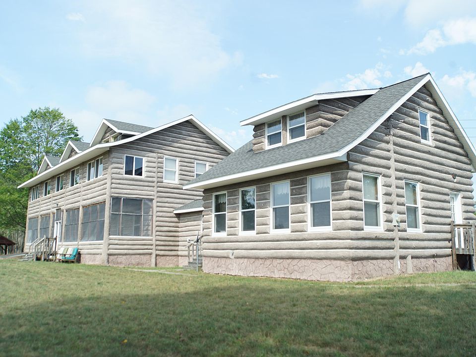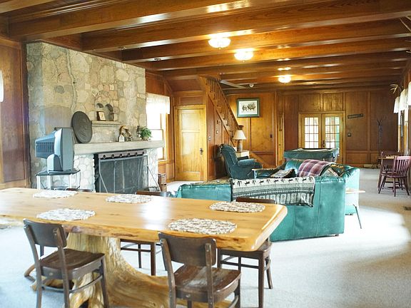 A true four season recreational estate in the heart of northern Michigan with frontage on Michigan's most famous trout stream! The grand 5 bedroom main lodge features an enormous great room with an impressive natural stone fireplace and unworldly carpentry detail. 5 bedrooms upstairs each have their own private balcony overlooking the river. A sweeping screened porch runs the entire length of the lodge for enjoying bug-free evening cocktails. The attached caretaker house features to more bedrooms with a commercial kitchen and over-sized maple dining table for large groups. All of this is situated on 188 maturely wooded acres offering riding, hiking, hunting, shooting and more. Truly a once in a lifetime heirloom property.