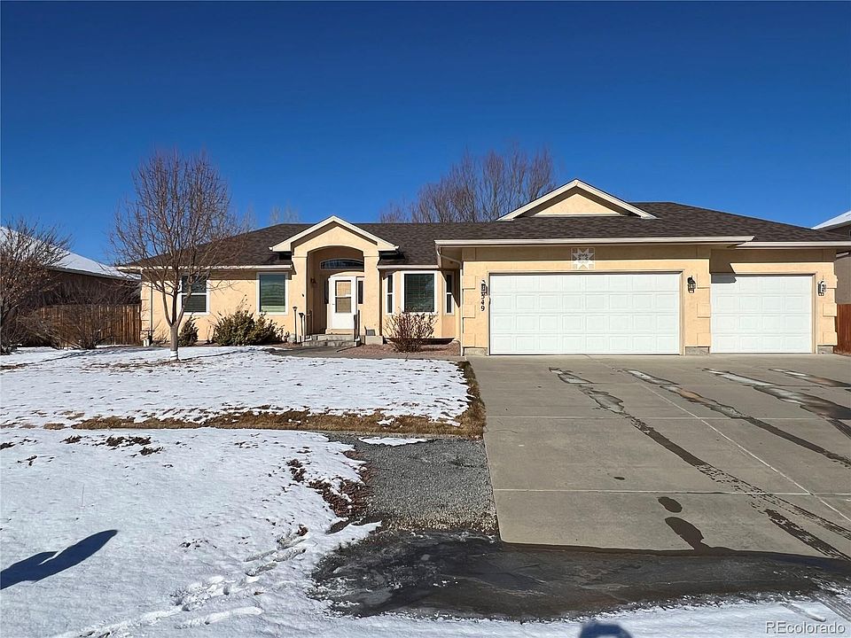 Simple living best describes this well maintained Pueblo West Golf course rancher with over 1500 square feet on the main and the same in the unfinished basement. Only looking for a rancher and don't need a basement?? This could still be the perfect property for you with the bedrooms and laundry all on the main level. The back and front yards are completely landscaped with a sprinkling system. The main level is a split level design with a formal dining, living room and a large kitchen and plenty of storage! The basement is a fabulous storage area or finish it for more living space. One room in the basement has been started for a bedroom. Easy access with the laundry closet in the hallway. The roof was replaced in 2024 as well as the central air conditioner.
