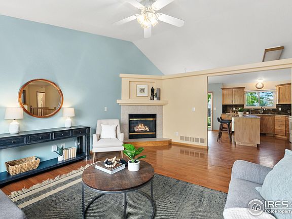 Welcome home to this Huntington Hills ranch home w/ mature trees & landscaping, ideal location & floorplan. Enter through the front door & notice the solid wood floors throughout the living room, dining room & kitchen. The living room has a cozy gas fireplace & vaulted ceilings. The kitchen has high-end granite countertops, custom cabinets, crushed granite sink, new backsplash & stainless steel refrigerator & dishwasher. The primary bedroom has an ensuite bathroom & large closet. Two bedrooms, a full bathroom w/ tub & laundry room round out the first level. Downstairs, find a full additional living space w/ 2 bedrooms (one could be a living room), a bathroom, additional laundry, workshop, & a kitchenette w/ cooktop, refrigerator, dishwasher & microwave. The backyard is lush w/ a patio, mature trees & shrubs. The attached two car garage is oversized. Many new updates make it ready to move in: Class IV hail resistant roof, windows, gutters, radon system. Don't miss this one!