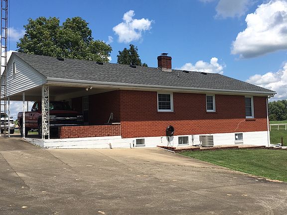 Brick home now available with eat-in kitchen, separate dining room or den, living room, 2 nice bedrooms, full bath with full basement with shower plus a carport all on 1 acre lot with 2 car garage with electric/concrete, pavilion and several outbuildings.