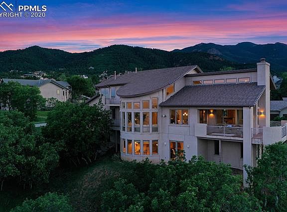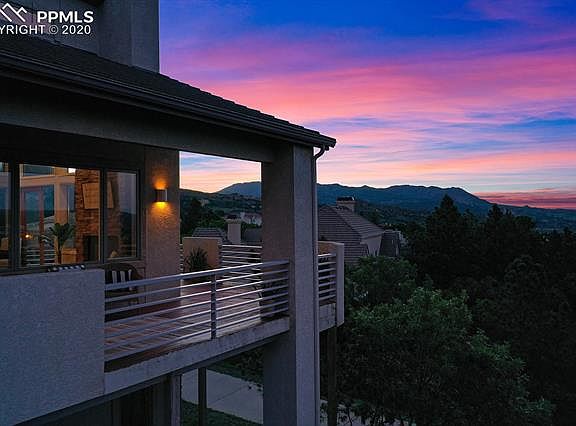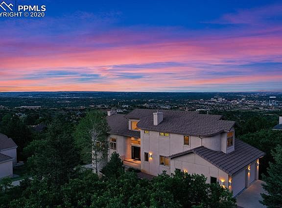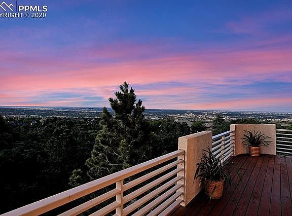 This incredible custom-built home sits on the Top of Skyway, boasting breathtaking panoramic views of the city, mountains, and Garden of the Gods. There are so many unique features throughout the home, such as floor-to-ceiling windows, a wrap-around wood deck, THREE gas fireplaces, and an awesome spiral staircase leading to the upper master suite with his/hers vanities and a HUGE walk-in closet, and basement family room with wet bar. The main-level bedroom (currently used as office) features built-in shelving and its own private deck. Two of the three large basement bedrooms have attached bathrooms and walk-in closets. The home also has Central AC, a central vacuum system, many rooms (and deck) wired for speakers, dual water heaters, and new carpet throughout. Home was a 1995 Parade of Homes Winner, is located on a half-acre lot in top-rated School District 12, and a short drive from Bear Creek Park. Amazing views from every room in the house!