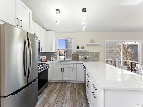 Welcome home! Step inside to an inviting living room with soaring, vaulted ceilings that fill the space with natural light. The open floor plan with brand new floors flows seamlessly into the beautifully updated kitchen, featuring quartz countertops, tall cabinetry, brand new appliances, and modern finishes—perfect for entertaining or quiet family meals. Roof is newer, as well as brand new windows and sliding doors through out the home. Downstairs, the finished basement provides additional living space, bedroom and bathroom, perfect for rental opportunity with the walk out basement. A cozy fireplace offers warmth for those Colorado evenings. Step outside to a freshly built deck nestled in the side yard—ideal for private gatherings. The home includes a finished, two-car garage and sits peacefully on a quiet cul-de-sac with friendly neighbors and direct access to a lush green belt—ideal for morning dog walks or evening strolls. Located just minutes from downtown Littleton, with nearby shopping, dining, and hospitals conveniently across Broadway, this home puts everything you need within easy reach. Don’t miss your chance to own this unique gem in Littleton!