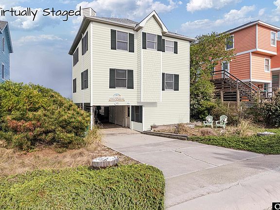 Just 100 Yards from the Beach! Wake Up to Ocean Sunrises! Located in the desirable Ocean Sands community of Corolla, this well-appointed Coastal Home is just the Third house from the Beach, offering easy Beach Access via a Boardwalk with Dune-top seating. Designed with a Reverse Floor Plan, the ground level features a Game Room with Ping-Pong table, TV, Seating and an Adjoining Patio with an Enclosed Outdoor Shower. The Mid-level offers 3 bedrooms, while the top floor boasts a spacious, Light-filled Open Living area with Vaulted Ceilings, a Wood Burning Fireplace, and access to a Sun Deck with Hot Tub—perfect for relaxing after a Day At The Beach. The kitchen includes a Breakfast Bar with seating for four and flows into the dining area with Dining for eight. Also on this level is an Ensuite Bedroom with a Bath featuring a Jacuzzi Tub. Enjoy the Community Tennis Courts right around the corner. Conveniently located in the heart of Corolla, it is close to Shopping, Dining, Grocery stores, and Golf at The Currituck Club. Whether you're seeking a Personal Retreat or Investment Opportunity, this home delivers the best of the Outer Banks Lifestyle! Roof 6 yrs, HVAC 3 & 4 yrs, water heater 7 yrs & 5 new windows.