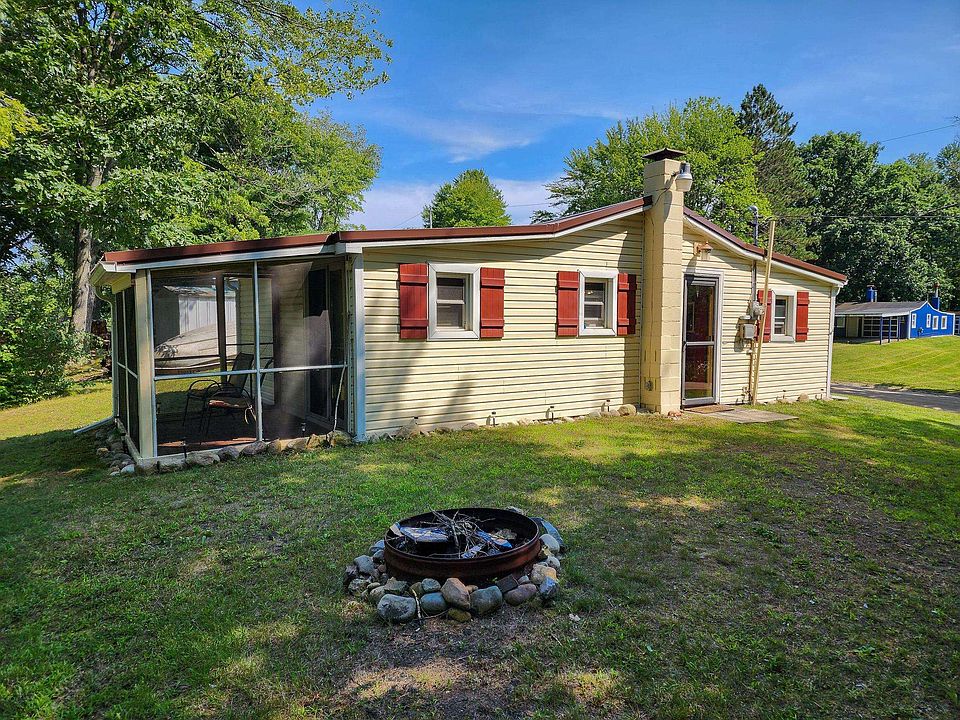 Adorable 1-bedroom, 1-bath home with a cozy knotty pine interior and a stunning cathedral ceiling. Enjoy the serenity of the screened-in sunroom, offering peaceful views of a former overflow area of Halfmoon Lake, now transformed into a lush wildlife sanctuary due to a lowered water table. The home comes partially furnished and includes a stove, refrigerator, and microwave. Recent updates include a metal roof (2016), windows (2018), siding (2020), flooring (2018), electrical (2023), and lighting (2024).