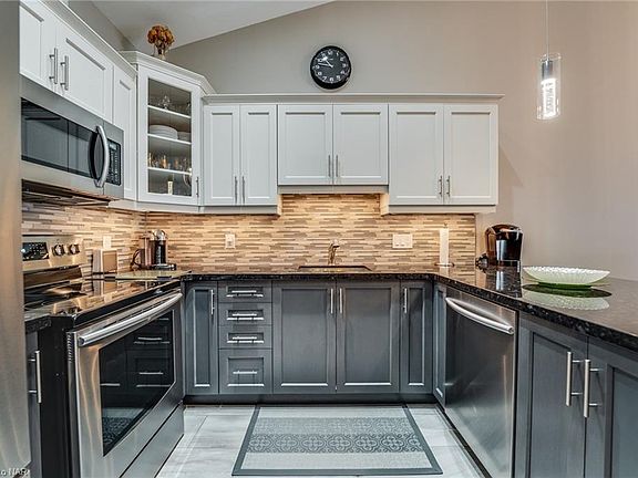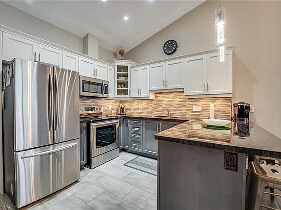 This lovely 2 bedroom, 2 bathroom condo features cathedral ceilings, hardwood in living and dining room, kitchen with granite countertops and stainless appliances, washer and dryer included, deck, AC, master with walk in closet and ensuite, all situated in the center of Niagara Falls, with great access to highway, park and grocery store.
