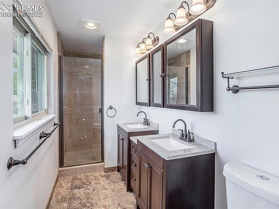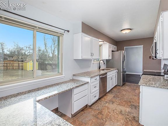 Fantastic 4 bedroom home in sought after Colorado Springs location. Fully equipped eat-in kitchen includes updated counters, stainless steel appliances, white cabinets, and breakfast bar. Entertaining is a breeze with this great floor plan complete with a cozy fireplace. Relax in your primary suite, complete with an en-suite bathroom with double sinks. Relax with your favorite drink in the fenced in backyard. Don't miss this incredible opportunity.